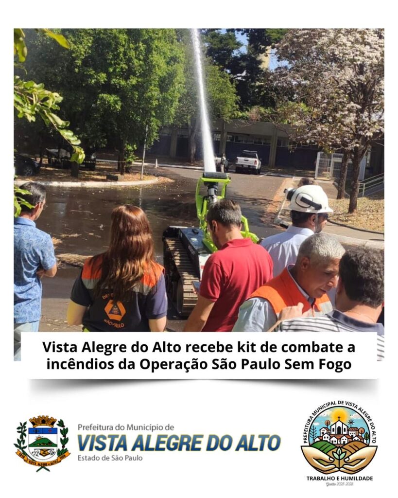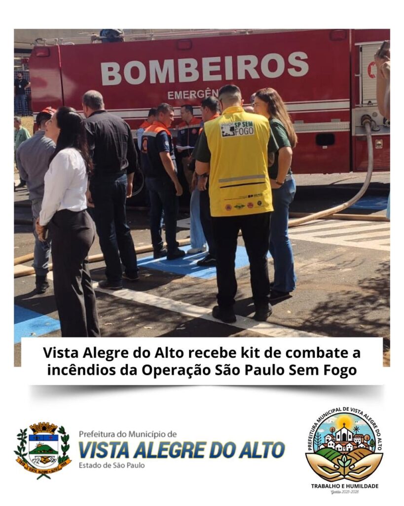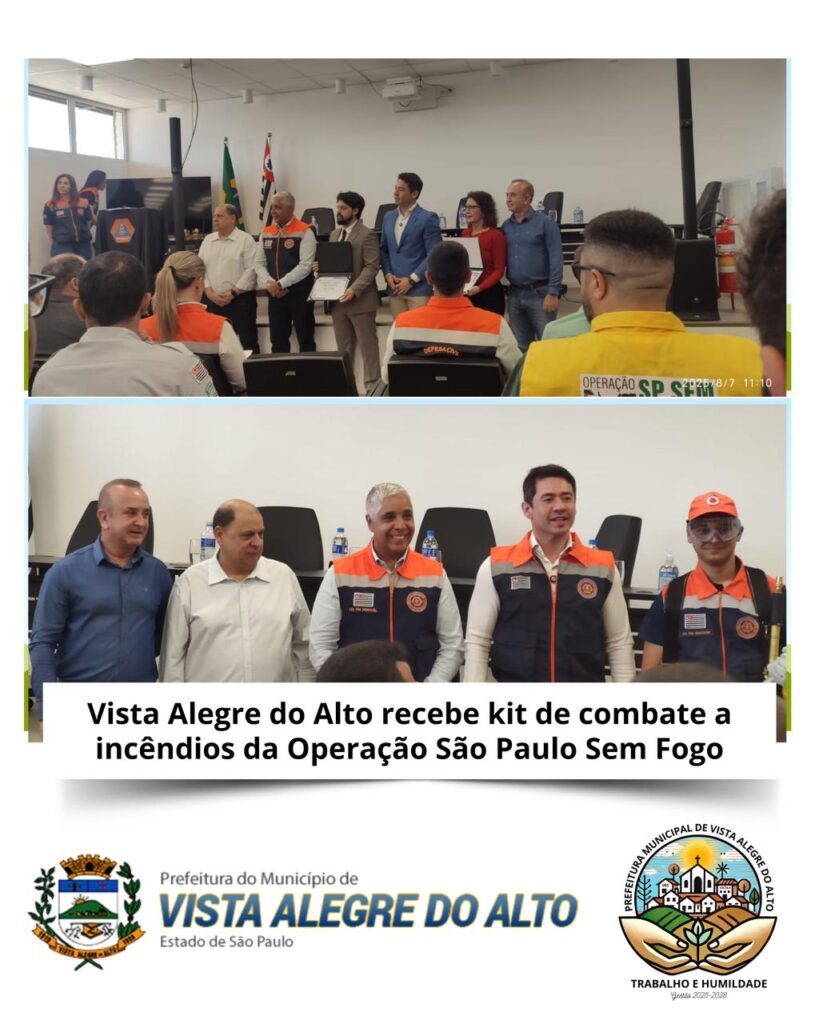 A Prefeitura de Vista Alegre do Alto, representada pelo vice-prefeito Zé Menegasso, pelo brigadista Helton José Cruz e pelo coordenador da Defesa Civil Municipal, Ronaldo Moraes da Silva, participou, no dia 7 de agosto, da entrega dos kits de estiagem da Operação São Paulo Sem Fogo. O evento foi realizado no Diretório Regional do DER, em Ribeirão Preto, reunindo representantes das regionais de Ribeirão Preto (I-06), Barretos (I-13) e Franca (I-14).